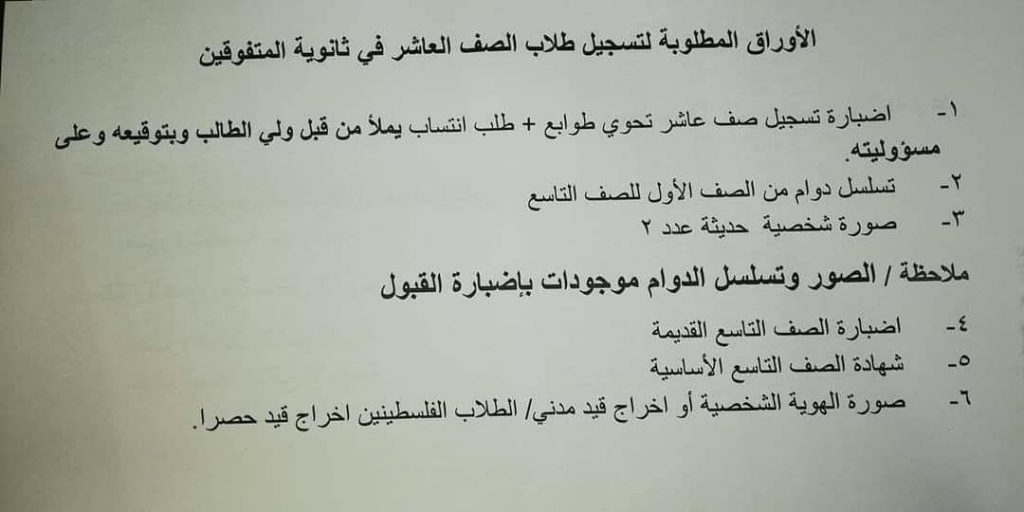 وأعلنت وزارة التربية أن التسجيل في ثانوية المتفوقين يبدأ يوم الأحد ١٣-٩-٢٠٢٠ و لمده اسبوع واحد.