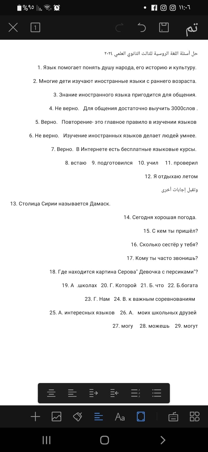 لذلك، يُعتبر حل أسئلة امتحان اللغة الروسية من أهم أدوات الاستعداد للنجاح في شهادة البكالوريا بسوريا، خاصة مع اعتماد المنهج الجديد الذي يركز على الفهم والتطبيق وليس الحفظ فقط.