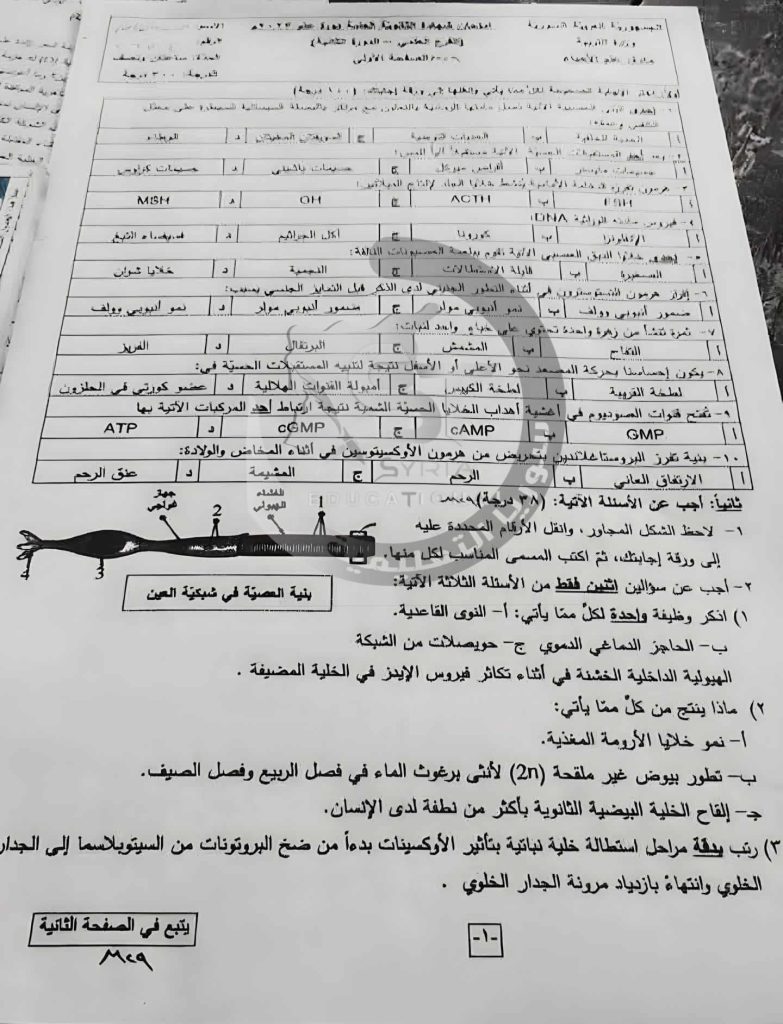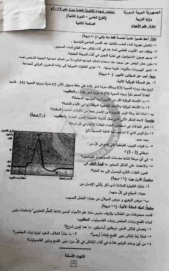 نقدم اليكم أسئلة امتحان مادة العلوم شهادة الثالث الثانوي الدورة الثانية للعام الدراسي 2023 في سوريا والتي جرت يوم السبت (19 آب 2023) مع الحل الخاص بها.