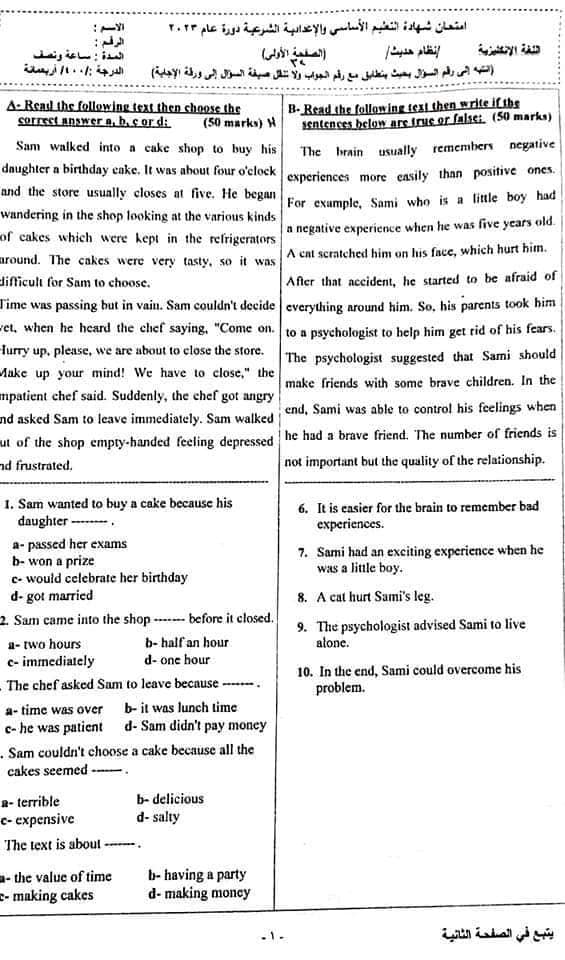 نقدم اليكم اسئلة امتحان مادة الانكليزي لشهادة الثالث الأساسي الدورة الأولى للعام الدراسي 2023 في سوريا والتي جرت يوم الخميس (22 حزيران 2023) مع الحل الخاص بها.