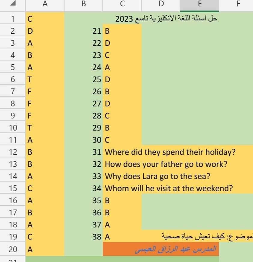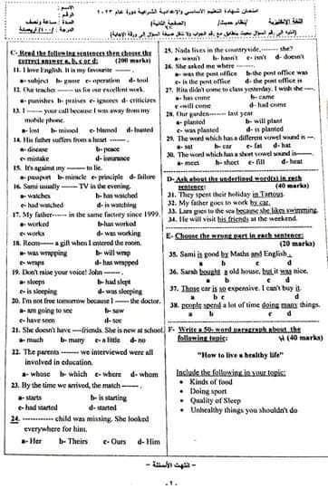 اسئلة امتحان مادة الانكليزي للصف التاسع يوم الخميس 22 حزيران 2023 في سوريا مع الحل