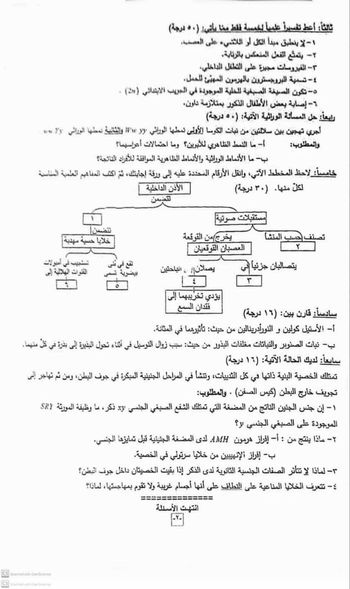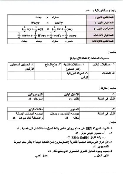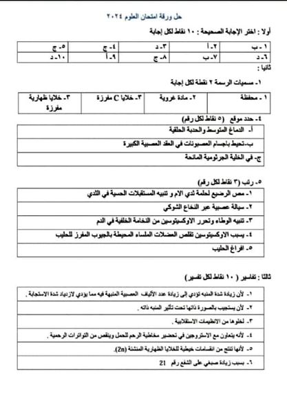 اسئلة امتحان مادة العلوم للثانوية العامة يوم الخميس 6 حزيران 2024 في سوريا مع الحل