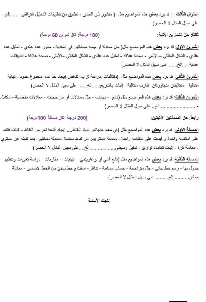 - ثالثاً: المسائل الكبرى: مسألتان شاملتان (كل مسألة 100 درجة):