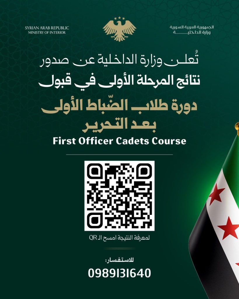 نتائج المرحلة الأولى من دورة طلاب الضباط الأولى في سوريا 2026