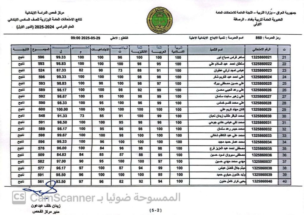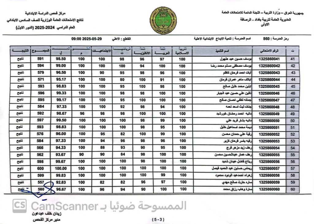نتيجة السادس الابتدائي في تربية الرصافة الاولى في العراق 2025 الدور الأول pdf بالاسم والرقم
