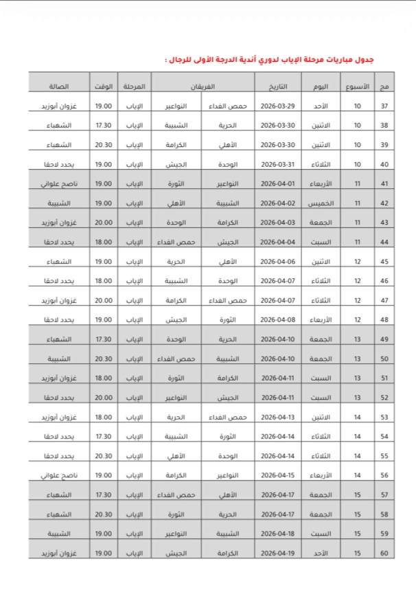 جدول مباريات مرحلة الإياب 2026